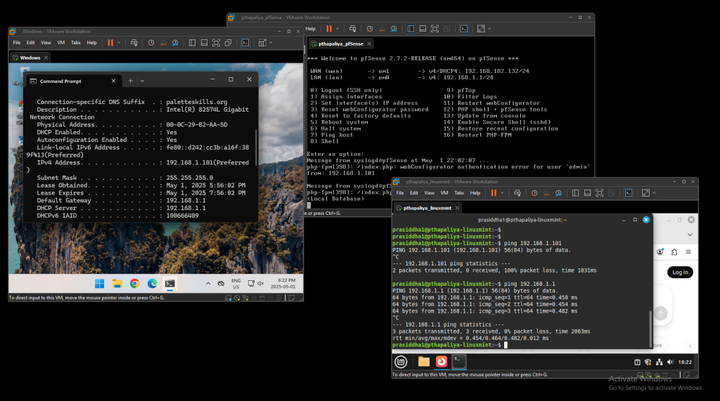 πŸ–₯️ Windows, Linux, and pfSense Setup (VMware Workstation)